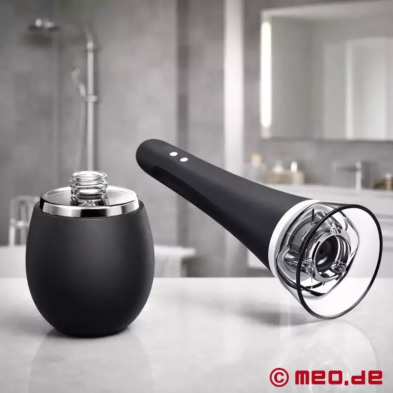 Ein Hilfsmittel, das die Analspülung und die Intimhygiene wesentlich erleichtert. Es handelt sich um ein automatisches Klistier. Anstatt einen Gummiball zusammenzudrücken, wird das Wasser durch eine Pumpe herausbefördert. Das hat den großen Vorteil, dass man nicht wie beim klassischen Gummiball-Klistier darauf achten muss, den Klistierball vor dem Herausziehen nicht loszulassen, um kein verunreinigtes Wasser in den Klistierball zu saugen. Das übernimmt hier die automatische Pumpe, die gleichzeitig verhindert, dass das Wasser zurückläuft. Das macht die Handhabung so viel einfacher und schneller.