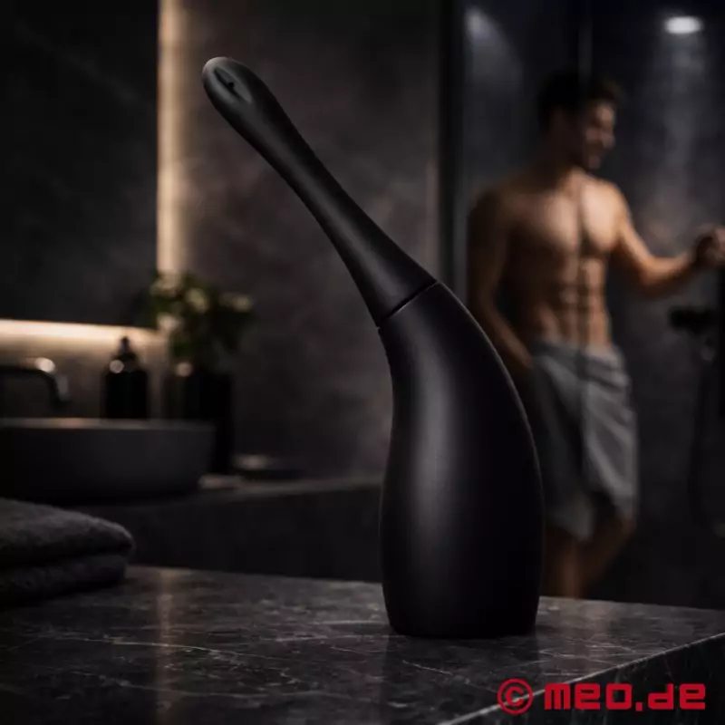Täitke mahuti leige veega (soovi korral isotoonilise soolalahusega). Niisutage anaalduši silikoonist otsikut veepõhise libesti (nt Aquameo®). Enne sisestamist pigistage konteinerist lühidalt õhk välja, sisestage anaaldüüs aeglaselt pärakusse, vajutage ühtlaselt, oodake lühikest aega ja tühjendage end tualetis. Vajaduse korral korrake, kuni vesi jääb puhtaks. Vihje: Kaks väikest dushi on parem kui üks liiga palju - õrnalt on parem.