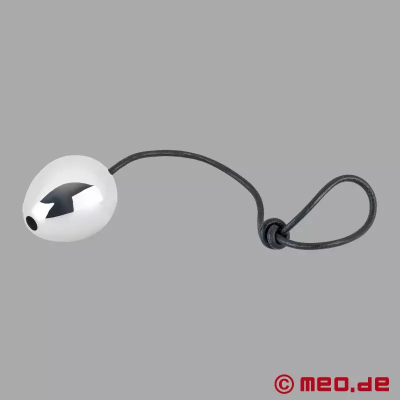 Polished stainless steel egg on a strong rubber string with a looped end for easy removal. Experience stronger orgasms as you pull this anal egg out at point of no return!