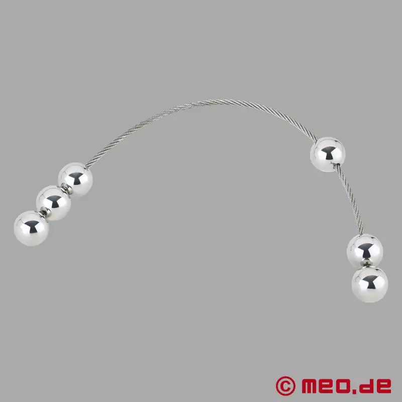 Meestele mõeldud mehelik roostevaba terasest pärakukett. 6 palli vallutavad teie anaalkanali pallihaaval sügavaks ja liigseks naudingutundeks! Sisestage kuul pallihaaval aeglaselt ja nautige, kuidas need iga kehaliigutusega anaalkanalis edasi-tagasi libisevad. Ja lõpuks - kõrgeima ekstaasi hetkel - tõmmake kett välja: hingemattev orgasm on garanteeritud!