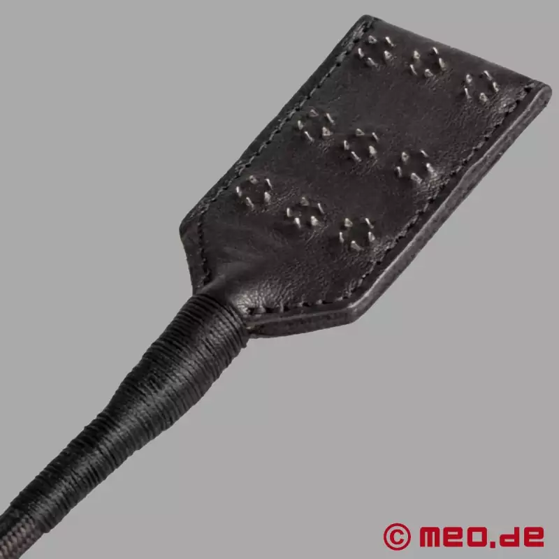BDSM-kroti ülemine osa, nn nahkpiits, on ühel küljel varustatud piikidega, mis võimaldavad muljetavaldavaid kasvatuslikke õppetunde. Kuna teine külg on klassikaliselt sile, võite alustada oma sessiooni õrnade löökidega ja suurendada intensiivsust, vahetades nahkplaksu külge vastavalt soovile. Ergonoomilise kujuga käepidemega käepide tagab kindla haarde peksusessiooni ajal. Seetõttu võivad seda peksa kasutada julgelt ka BDSM-i algajad. BDSM-kropi abil saate mitmekülgse peksuvahendi, mis rikastab loominguliselt iga teie seanssi.