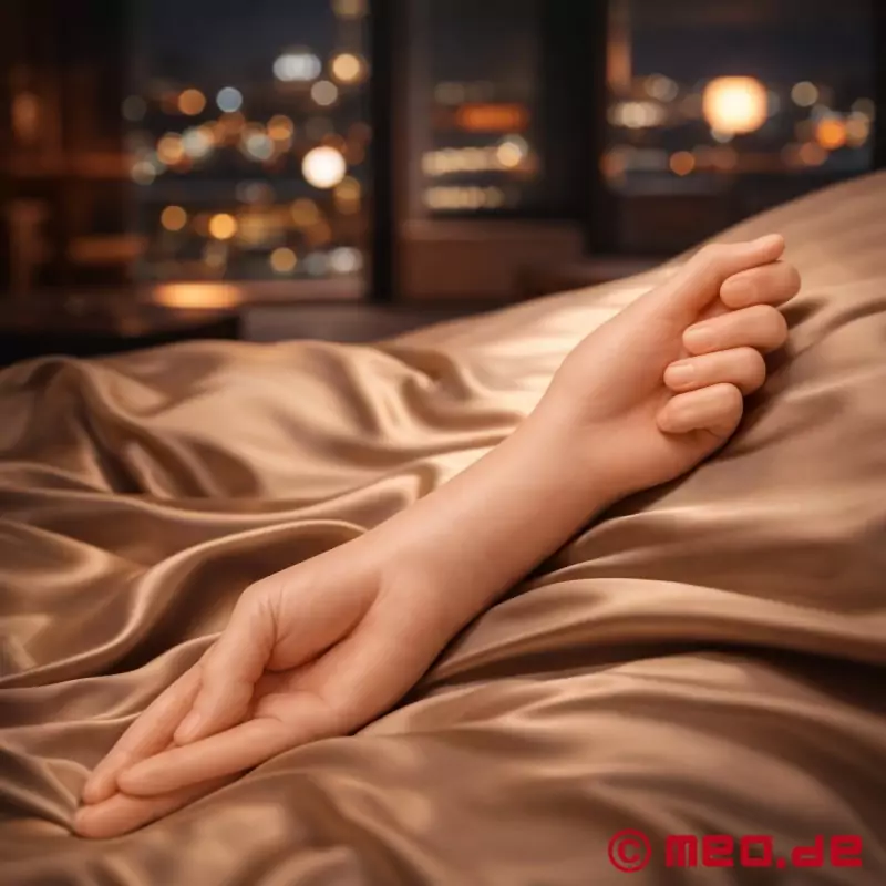 Kasutage heldelt ühte kvaliteetset hübriidlibestit, nagu GloryHole® või ManCunt™. Alustage kitsa käekujuga ja sisestage dildo aeglaselt ja õrnalt. Võtke aega, et valmistada keha ette anaalseks või vaginaalseks venitamiseks. Niipea kui see on sobiv, võite minna üle teise käe, kokkusurutud rusikavormi juurde. See pakub maksimaalset täidlust ja võrratult intensiivset tunnet.