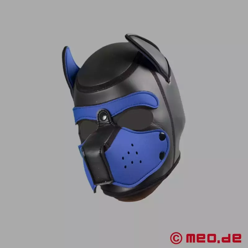 Bad Puppy® must-sinine koeramask on selge märk teie rollist karjas: selge, otsekohene ja eksimatu. Kas annad käpuli, kallistad oma peremehega või lihtsalt mängid oma koera luuga: selle maskiga annad endast kõik märku! See mask on populaarne kogu maailmas - Berliinist Tokyoni, Pariisist San Franciscosse. Pehme, veniv neopreenist koeramask istub ideaalselt ümber pea, ilma et seljas oleks vaja tüütuid tõmblukke või nööre. See sobib ideaalselt kõigile, kes võtavad oma rolli Human Pup Plays tõsiselt ja eelistavad olla kogu päeva neljal käpalisel väljas.
