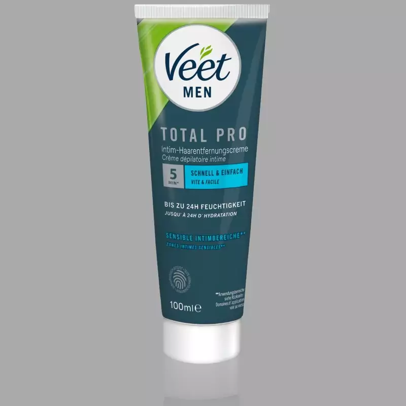 Veet Men Total Pro™ intiimkarvade eemaldamise komplekt on spetsiaalselt välja töötatud kasutamiseks tundlikes intiimpiirkondades. Kombinatsioon intiimpiirkonna depilatsioonikreemist ja aloe veraga hoolduspalsamist võimaldab põhjalikku karvade eemaldamist ilma lõikumisohuta, nagu võib juhtuda raseerimise korral. Tulemuseks on sile ja hoolitsetud nahk vaid mõne minutiga. Intiimpiirkonna depilatsioonikreemina on komplekt kohandatud tundliku naha erinõuetele ja sobib ideaalselt meeste depilatsioonikreemiks.