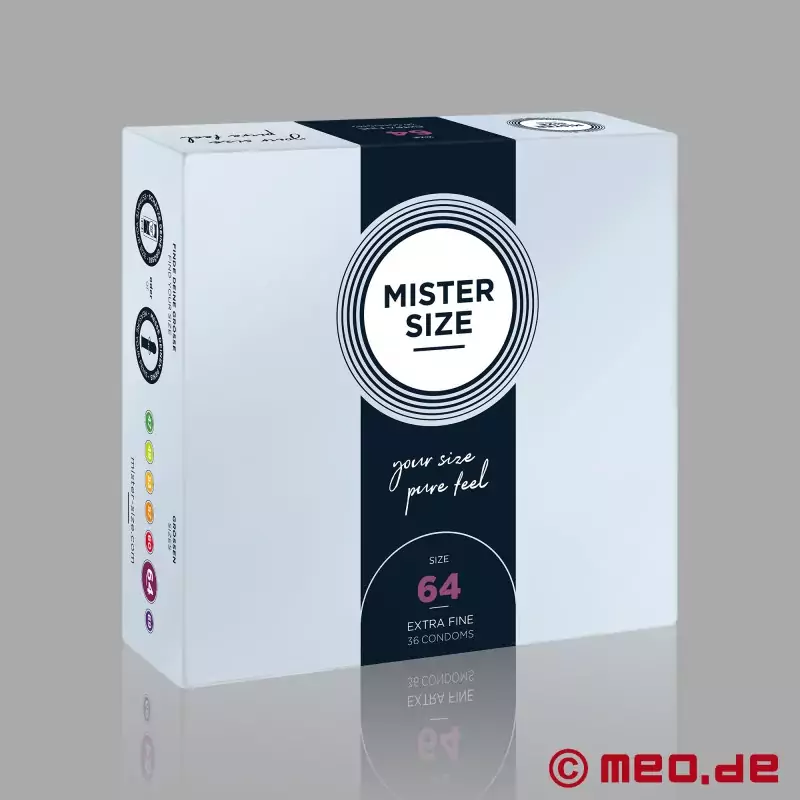 Paljud kondoomid on toodetud kitsas standardlaius (sageli umbes 52-54 mm), XXL-kondoomid on sageli vaid veidi laiemad. Neile, kes jäävad sellest vahemikust väljapoole, tekitavad standardiseeritud suurused sageli probleeme: Kondoom on kas liiga lahtine, liiga kitsas või lihtsalt ebamugav. MISTER SIZE™ katab palju laiemat vahemikku 47 mm kuni 69 mm, nii et sobivus, tunnetus ja kaitse käivad koos.