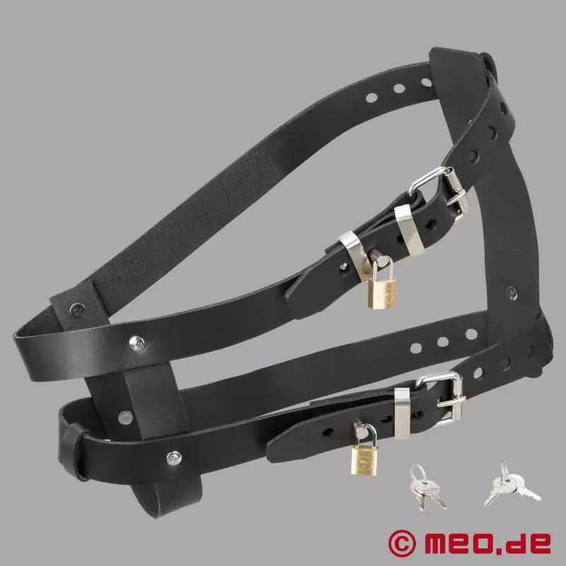 Your sub loves the smell of your sneakers? Make him wear it. The Sniff My Sneaker Face Harness by MEO Berlin straps his favorite kink right to his face - tight, secure, and lockable. Slide in a ripe pair of low-tops or high-tops, tighten the leather straps, and watch him melt under the scent. No ropes, no tape, no excuses. With full nose and mouth coverage and hands-free control, this sniffer harness turns your worn sneakers into a full-blown fetish experience. Add socks, poppers, or go raw. He'll sniff until you say stop.