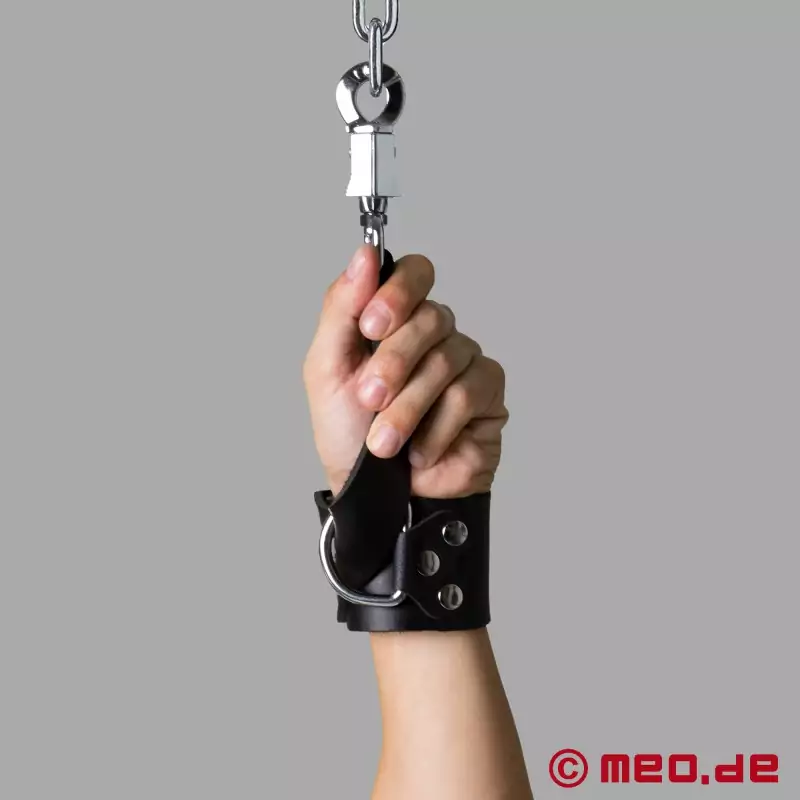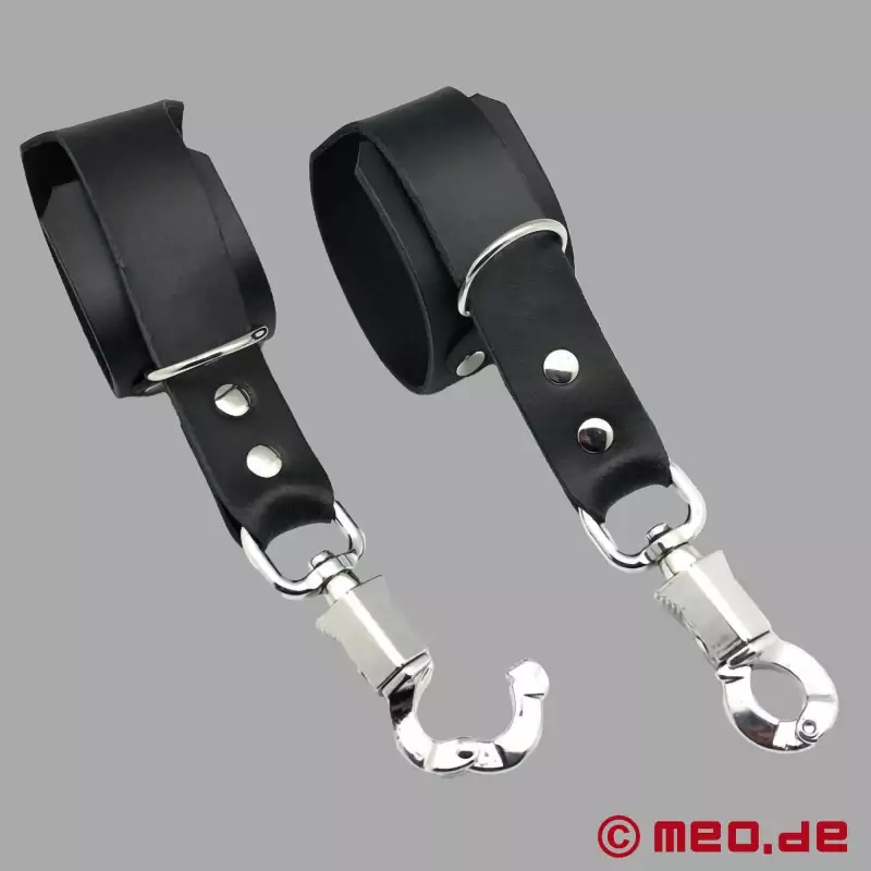 Need käerauad on spetsiaalselt välja töötatud intensiivsete bondage-sessioonide jaoks. Tugevad nahkrihmad võimaldavad optimaalset fikseerimist randmetel. Paanikavastased karabiinid pakuvad täiendavat turvalisust - ideaalsed nii algajatele kui ka edasijõudnutele.