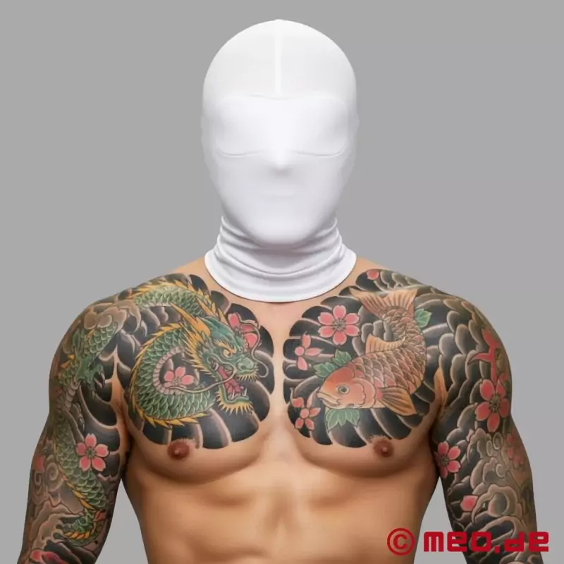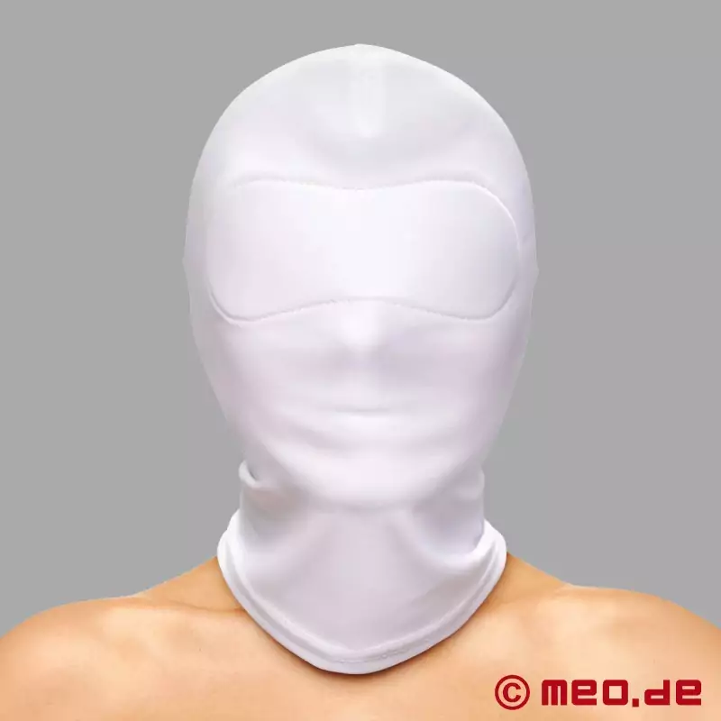 See valge spandex mask tagab absoluutse pimeduse ja muudab iga BDSM-seanss äärmiselt intensiivseks kogemuseks. Täiesti läbipaistmatu, tugevdatud silmapiirkond blokeerib kogu valguse, samal ajal kui elastne spandex/nylon materjal istub tihedalt ümber sinu näo ja keskendub sinu taju täielikult puudutusele, helidele ja kehalisusele.