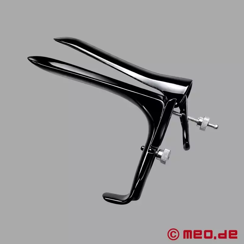 Whether you’d like a speculum for medical curiosity or kink reasons, MEO.de has a huge selection of sex speculums. One of those items is the Speculum Black Berlin. Made from stainless steel, the width is variable between 1.2″ and 1.6″ with a possible spread of up to 4″. This black speculum can be used vaginally or anally, and it offers two ways to adjust the spread.